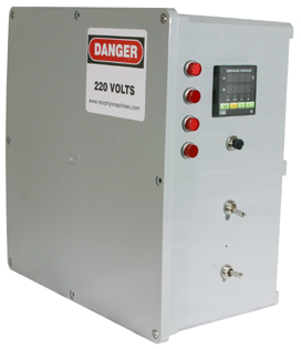 Kit includes: 12 x 12 x 6 Panel box, relays, digital (dual readout) PID temperature controller, thermocouple, thermocouple adapter, multifunction timer, crimp-on wire terminations, switches and buttons, power indicator lights, terminal strips, panel mounting feet, electrical warning labels and wiring diagrams.